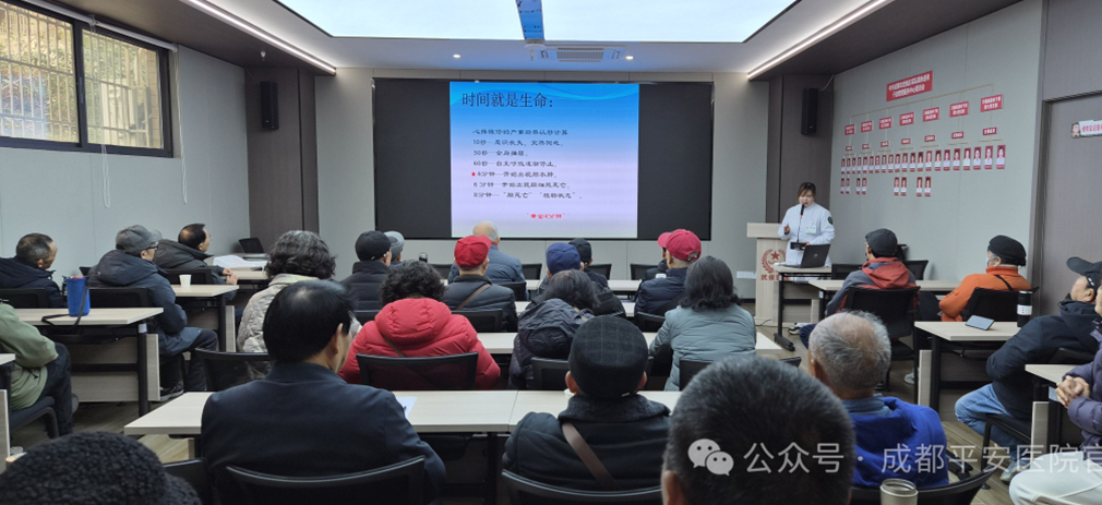 2026年1月27日上午,冬日的暖阳洒满武侯区军队离休退休干部服务中心,成都平安医院(原四川省红十字肿瘤医院)“送健康到军休中心”主题活动在此温情启幕。医院党支部书记郭淑荣带领急诊科骨干护士团队,为在场的离退休干部们带来了一场干货满满的“心肺复苏” 急救培训,用专业知识为老年群体的生命安全筑牢防线。